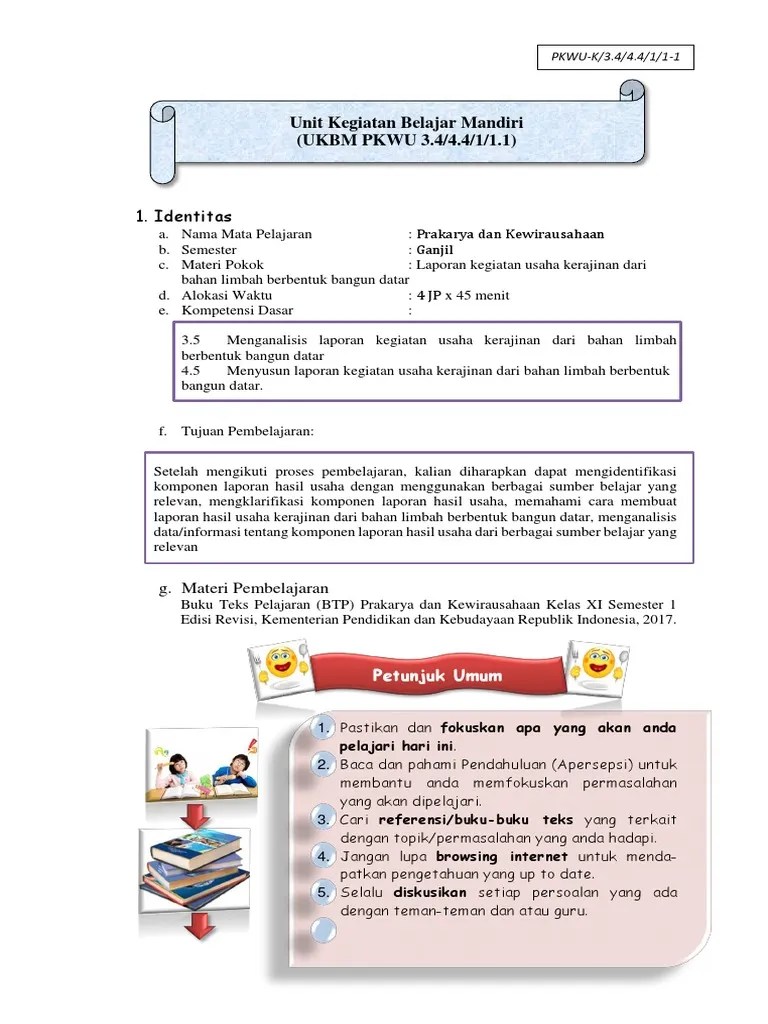Melakukan analisis contoh laporan usaha kegiatan usaha pengolahan makanan. Inilah pembahasan selengkapnya mengenai contoh laporan kegiatan usaha kerajinan dari bahan limbah berbentuk bangun datar. Laporan pelaksanaan kegiatan hendaknya … kecuali. Laporan kegiatan usaha kerajinan dari bahan limbah berbentuk bangun datar. Setelah kegiatan produksi berjalan maka hal yang, selanjutnya dilakukan adalah pelaporan hasil kegiatan produksi tersebut. Laporan yang menunjukkan hasil kegiatan usaha dalam jangka waktu tertentu dan dapat digunakan sebagai indikator keberhasilan usaha dalam menjalankan usahanya . Laporan kegiatan usaha kerajinan limbah berbentuk bangun ruang . Laporan kegiatan usaha kerajinan dari bahan limbah berbentuk bangun ruang. Bertujuan untuk mengetahui kondisi usaha, dan kemungkinan keberhasilan dan kegagalan usaha disebut. Diharapkan dapat melengkapi format laporan tersebut pada usaha yang kamu pilih/ kembangkan. Berikut ini adalah contoh laporan pelaksanaan kegiatan usaha, kalian dapat melengkapi format laporan tersebut pada usaha yang kamu pilih atau ingin . Modul pkwu kerajinan kelas xi kd 3.10. Menganalisis laporan kegiatan usaha analisis laporan pelaksanaan kegiatan.